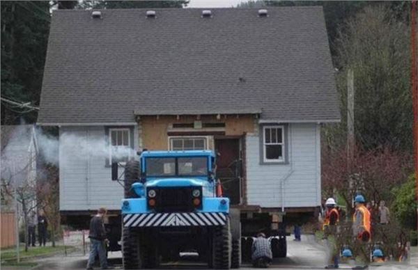 能整栋搬家用汽车运走,这和他们房屋的结构是分不开的。美国人很多房子都是木质结构。搬家的时候,先把东西用木纸箱打包好,然后将房子整栋一次性搬走。