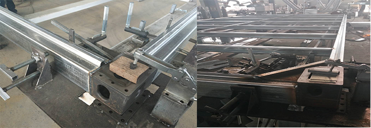 2、型材轧制成型后,经过校正拼装,配合以连接吊装角件,焊接成独立的屋面或地面结构;